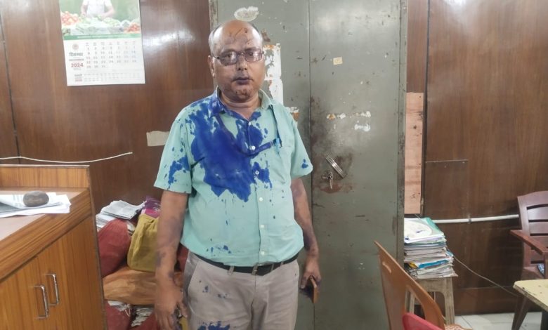 भोपाल। राजधानी के बैरागढ़ वृत्त कार्यालय में मंगलवार को एक अप्रत्याशित घटना ने प्रशासनिक महकमे को झकझोर कर रख दिया। नायब तहसीलदार रतिराम अहिरवार पर एक महिला द्वारा स्याही फेंके जाने की घटना सामने आई है। महिला की पहचान उपासना जौहरी के रूप में हुई है, जिसने तहसीलदार के चेहरे पर इंक पेन से नीली स्याही फेंकी, जिससे उनके कपड़े खराब हो गए।