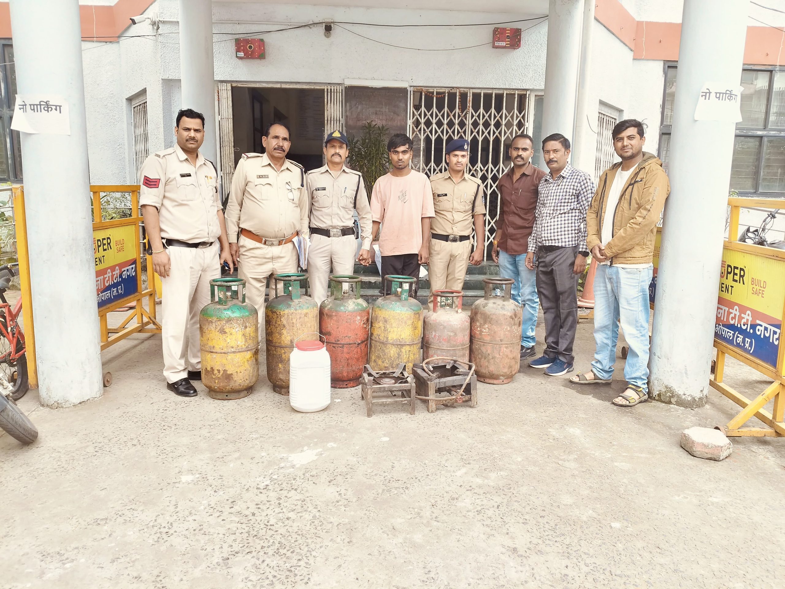 भोपाल। राजधानी भोपाल की टीटी नगर पुलिस ने चोरी के एक मामले में त्वरित कार्रवाई करते हुए महज 24 घंटे के भीतर चोरी का खुलासा कर आरोपी को गिरफ्तार कर लिया है। पुलिस ने आरोपी के कब्जे से 6 गैस सिलेंडर (05 कमर्शियल व 01 घरेलू), 01 तेल का डिब्बा, और 02 गैस भट्टियाँ सहित लगभग 40,000 रुपए मूल्य का मशरूका बरामद किया है। फरियादी डी.आर. सिंह (67), निवासी सोमिया इन्क्लेव, चूनाभट्टी ने थाना टीटी नगर में रिपोर्ट दर्ज कराई थी कि बघेलखंड भवन के गोदाम का ताला टूटा हुआ मिला और भीतर रखा सामान चोरी हो गया है। इस पर पुलिस ने धारा 331(4), 305(ए) बीएनएस 2023 के तहत मामला दर्ज किया।