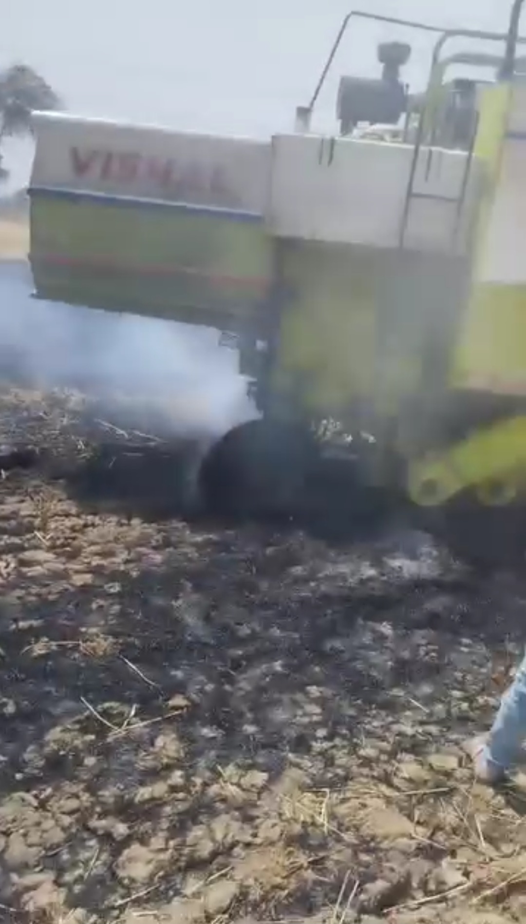 हार्वेस्टर में शॉर्ट सर्किट से आग लगी