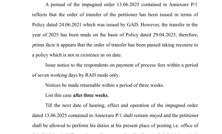 भोपाल। जल संसाधन विभाग, मध्यप्रदेश में नियमों और न्यायालयीन आदेशों की अवहेलना का एक गंभीर मामला सामने आया है। सिवनी स्थित वैन गंगा कछार जल संसाधन विभाग के अंतर्गत पदस्थ अमीन उमेश शर्मा को लेकर जारी विवाद थमने का नाम नहीं ले रहा है। प्राप्त जानकारी के अनुसार मुख्य अभियंता वैन गंगा कछार सिवनी द्वारा 13 जून 2025 को उमेश शर्मा अमीन का स्थानांतरण अपर वैन गंगा बांध उप संभाग क्रमांक-3, भीमगढ़ से बरघाट उप संभाग के लिए किया गया था। इस स्थानांतरण को अमीन द्वारा नियमविरुद्ध बताते हुए चुनौती दी गई, जिस पर माननीय उच्च न्यायालय, जबलपुर ने 15 अक्टूबर 2025 को स्थानांतरण आदेश पर स्थगन देते हुए यथावत पदस्थ रखने के निर्देश दिए।