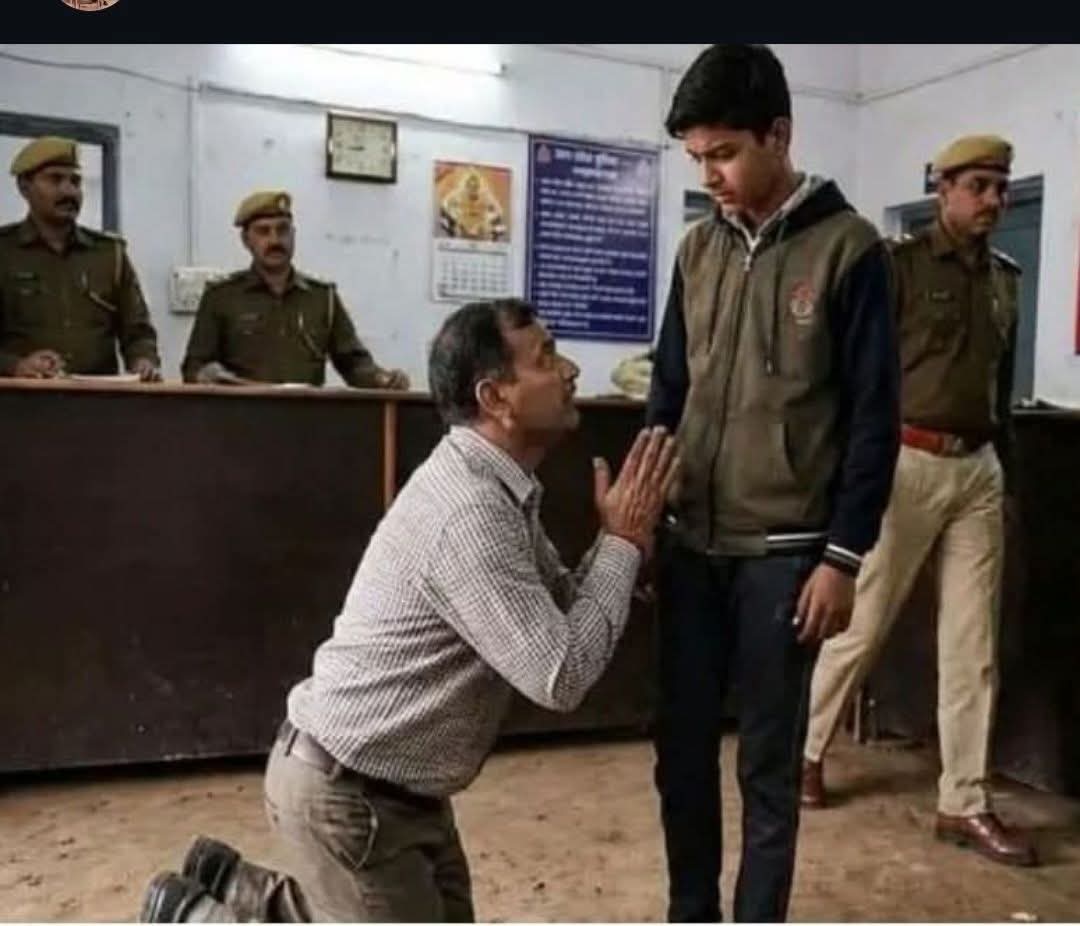 देवरिया । आहत कर देने वाली यह घटना देवरिया की है, जहाँ कक्षा 11 में पढ़ने वाला एक छात्र अपने माता-पिता का इकलौता बेटा अपने ही पिता को थाने में, सबके सामने, पैरों में गिरकर माफी माँगने को मजबूर कर देता है।