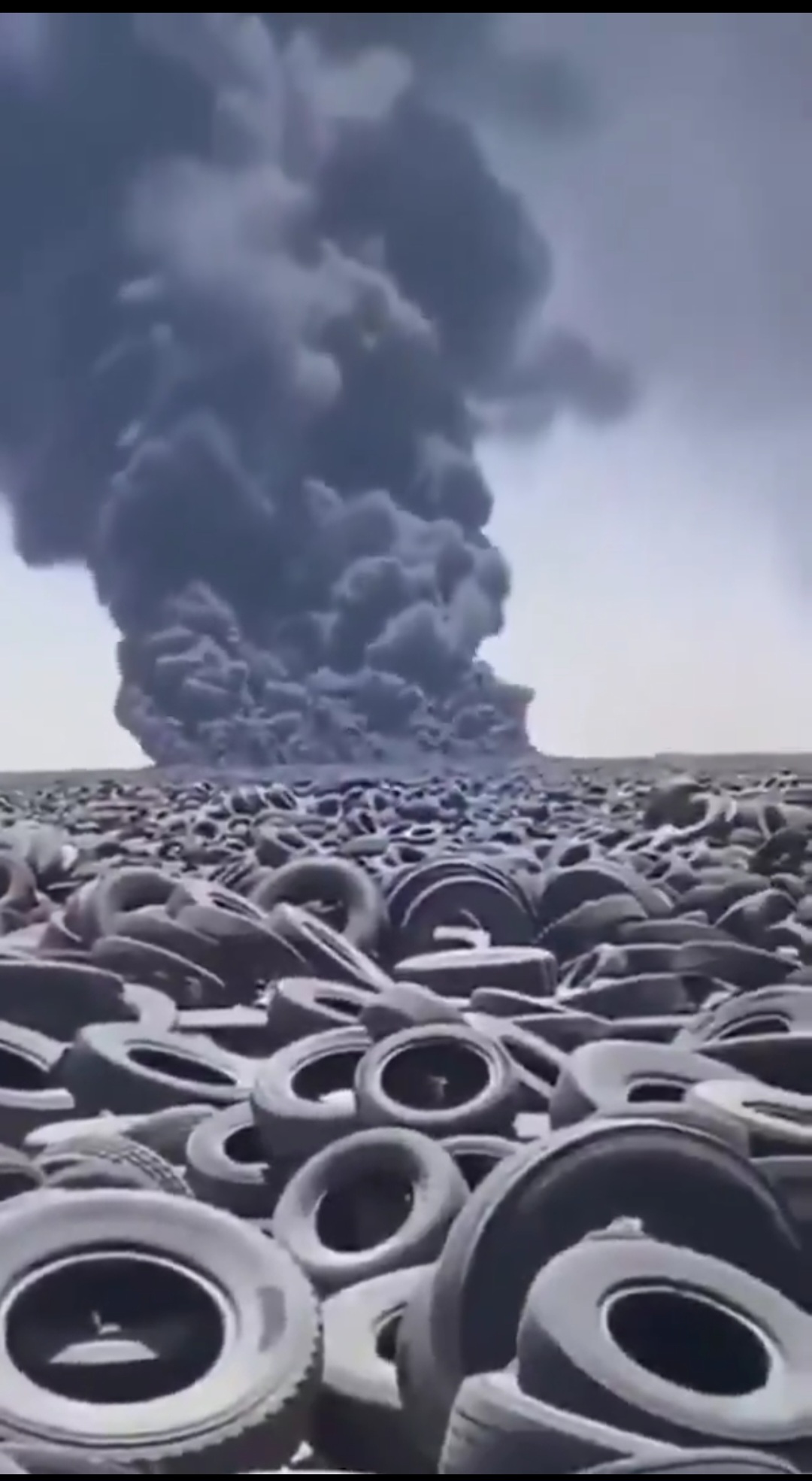 कुवैत के सुलैबीया (Sulaibiya) क्षेत्र में लाखों-करोड़ों पुराने टायरों का विशाल भंडार वर्षों से जमा है। इसे दुनिया का सबसे बड़ा टायर ग्रेवयार्ड माना जाता है। यहां समय-समय पर लगने वाली आग महीनों तक नहीं बुझती, क्योंकि रबर और रसायनों से बने टायर अत्यंत ज्वलनशील होते हैं। विशेषज्ञों के अनुसार टायरों के जलने से निकलने वाला धुआं कार्बन ब्लैक, सल्फर डाइऑक्साइड, नाइट्रोजन ऑक्साइड, जहरीले रसायन वायुमंडल में घोल देता है, जो मानव स्वास्थ्य और पर्यावरण दोनों के लिए बेहद खतरनाक है।