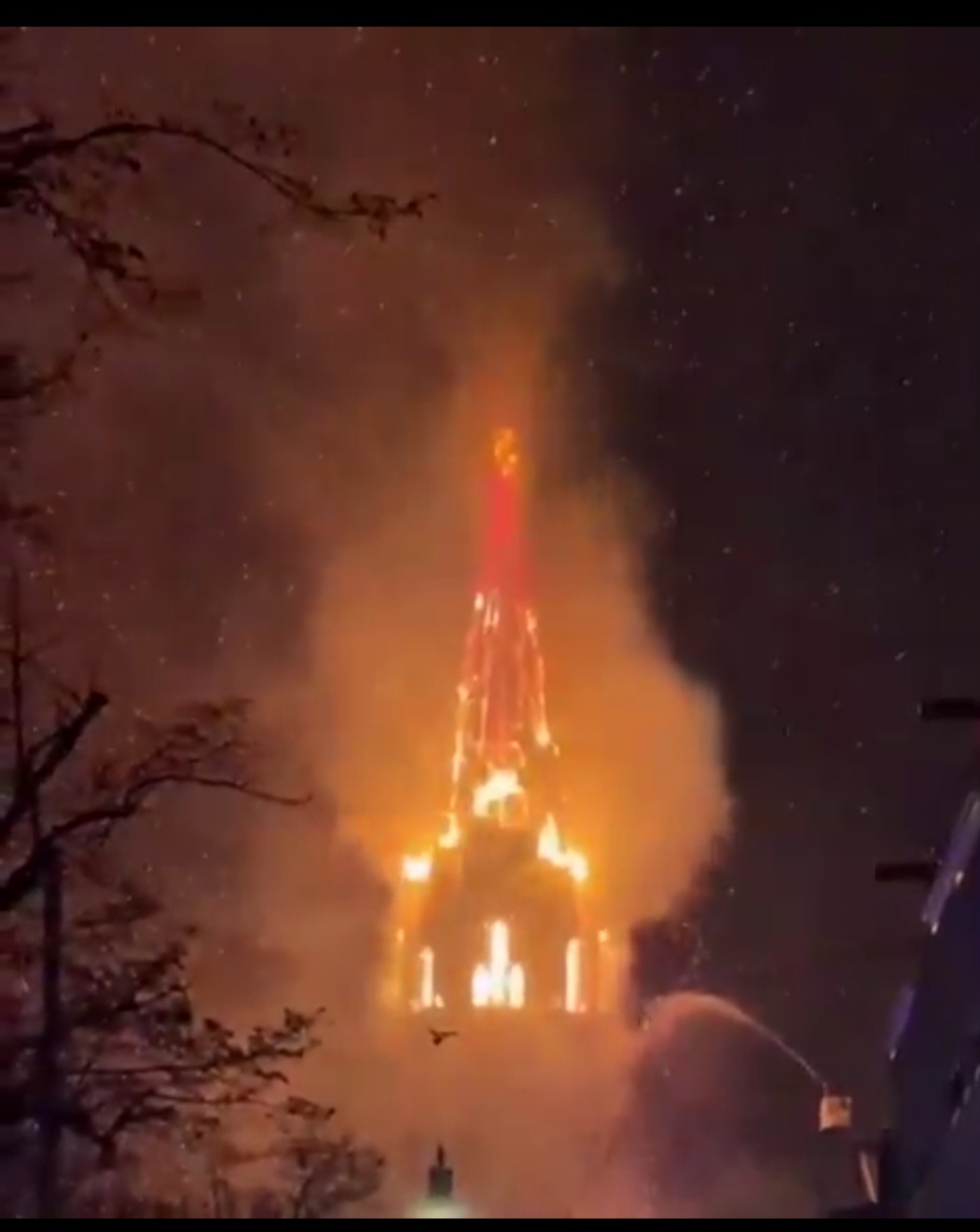 प्रत्यक्षदर्शियों के अनुसार आग इतनी विकराल थी कि छत पूरी तरह जलकर राख हो गई, अंदरूनी संरचना तबाह हो गई, जबकि बाहरी दीवारें खड़ी रहीं। इमारत के ढहने से मलबा नीचे गिरने लगा, जिसके चलते आसपास के लोगों को तत्काल सुरक्षित स्थानों पर ले जाना पड़ा। दमकलकर्मियों ने घंटों मशक्कत कर आग पर काबू पाने की कोशिश की, लेकिन तब तक चर्च पूरी तरह नष्ट हो चुका था।